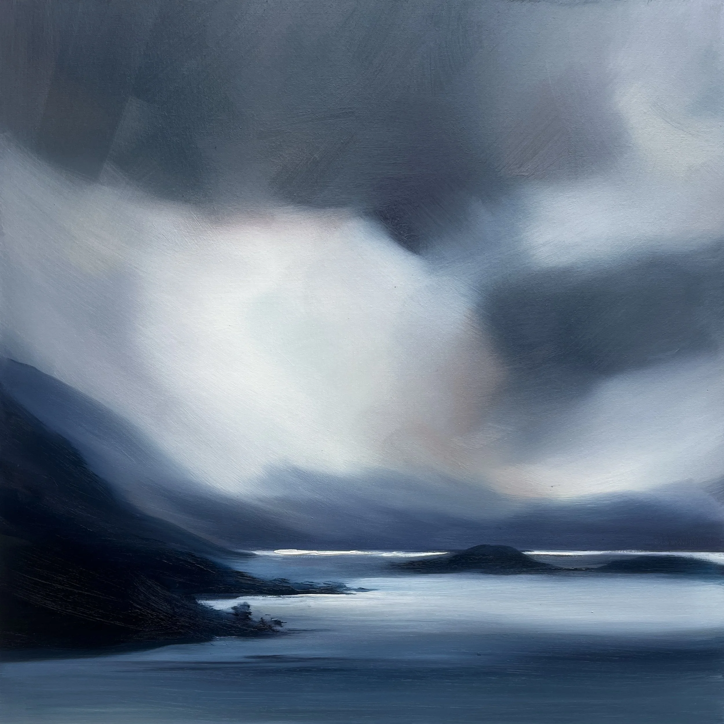 My inspiration is derived from the magnificent Scottish landscape, particularly the west coast. The recurring themes in my work reflect the dramatic effects of weather on the mountains and shorelines, trees and of course my favourite place, Edinburgh.